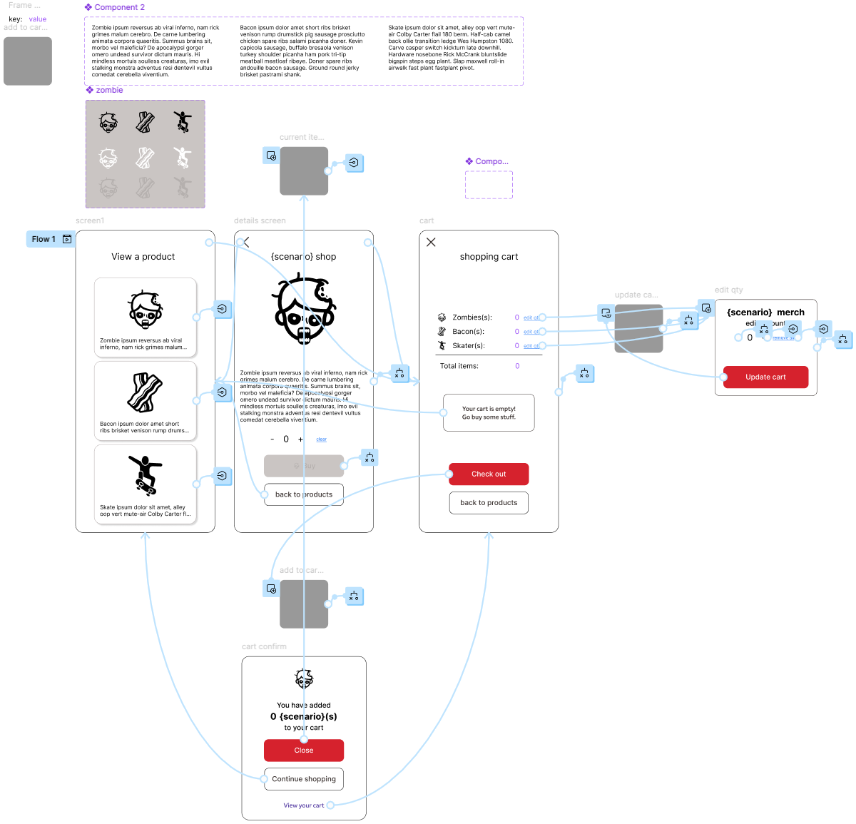 This was an exercise to see how robust I could make a prototype using local variables and only 3 screen. The result is a fully functioning shopping experience .